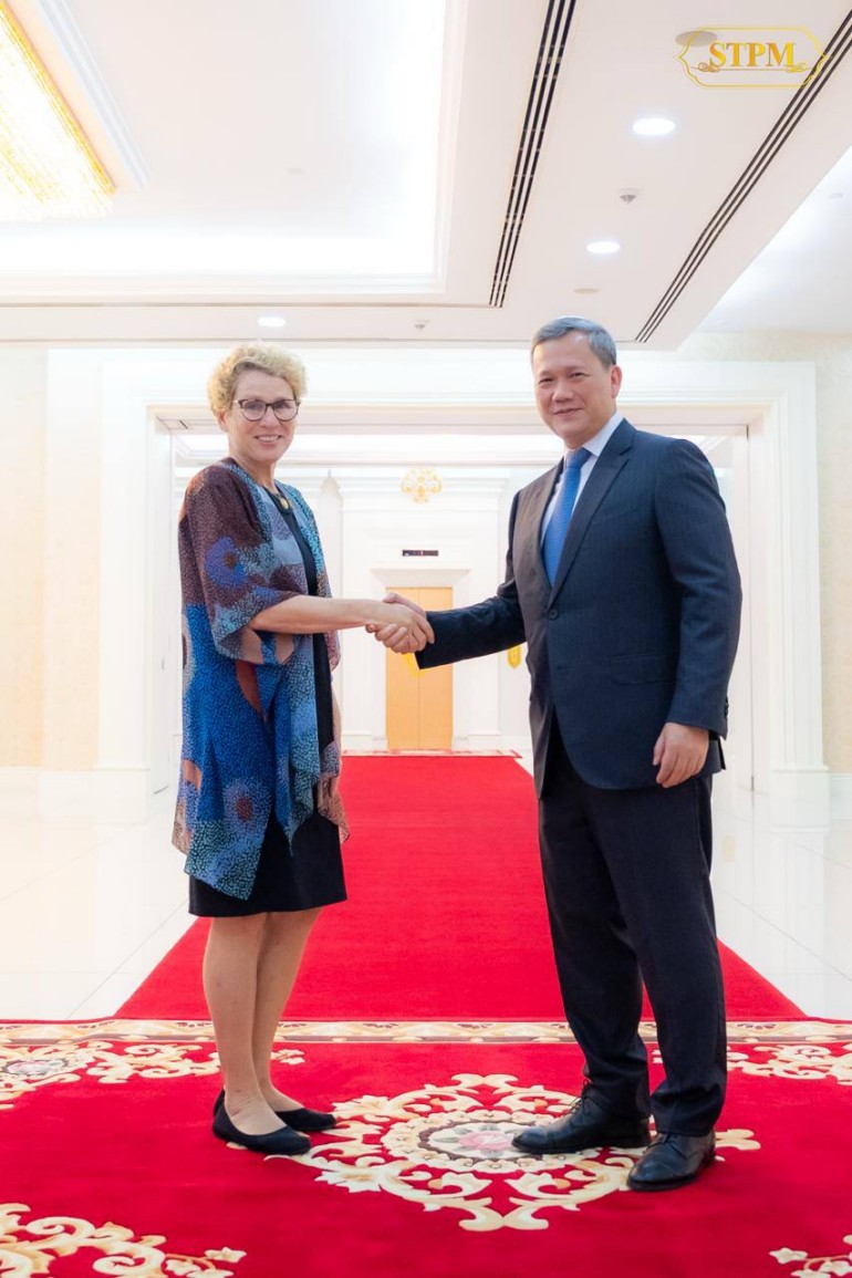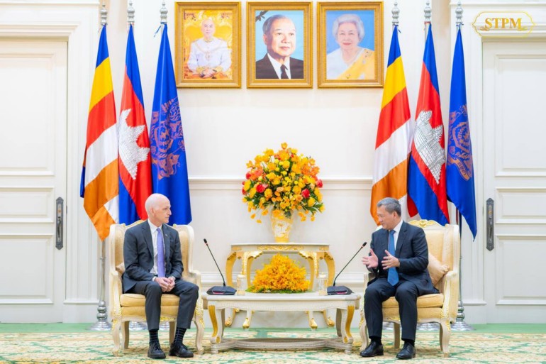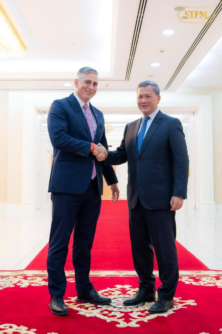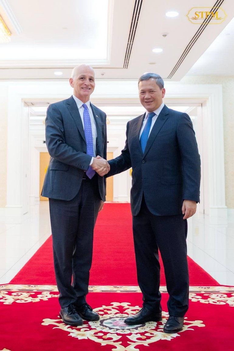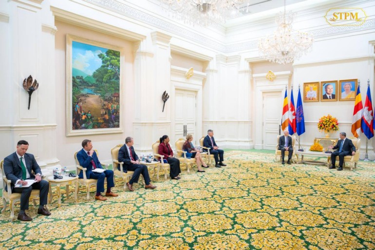 នារសៀល ថ្ងៃទី២៦ ខែកញ្ញា ឆ្នាំ២០២៥ នៅវិមានសន្តិភាព, សម្តេចមហាបវរធិបតី ហ៊ុន ម៉ាណែត នាយករដ្ឋមន្ត្រី នៃព្រះរាជាណាចក្រកម្ពុជា បានអនុញ្ញាតឱ្យគណៈប្រតិភូសភាសហរដ្ឋអាមេរិក ដឹកនាំដោយឯកឧត្តម Adam Smith សមាជិកសភាប្រចាំរដ្ឋ Washington រួមដំណើរដោយឯកឧត្តម Michael Baumgartner សមាជិកសភាប្រចាំរដ្ឋ Washington និងលោកជំទាវ Chrissy Houlahan សមាជិកសភាប្រចាំរដ្ឋ Pennsylvania ចូលជួបសម្តែងការគួរសម និងពិភាក្សាការងារ។