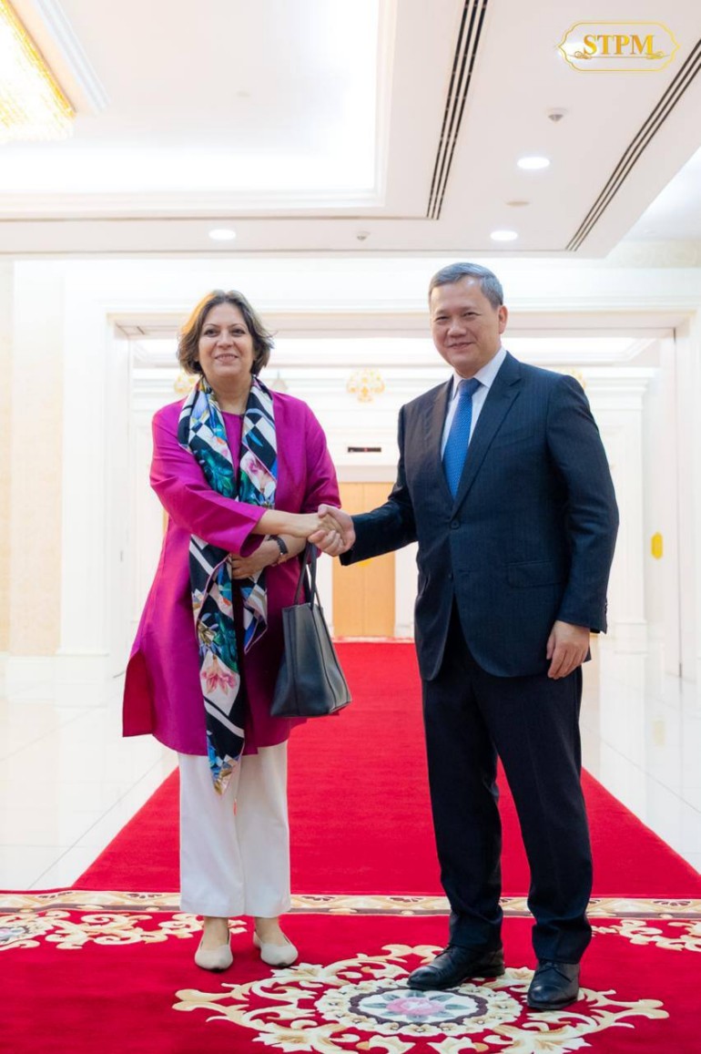នារសៀលថ្ងៃទី២៦ ខែកញ្ញា ឆ្នាំ២០២៥ នៅវិមានសន្តិភាព, សម្តេចមហាបវរធិបតី ហ៊ុន ម៉ាណែត នាយករដ្ឋមន្ត្រី នៃព្រះរាជាណាចក្រកម្ពុជា បានអនុញ្ញាតឱ្យលោកស្រី Jyotsana Varma នាយិកាស្ថានតំណាងធនាគារអភិវឌ្ឍន៍អាស៊ី (ADB) ប្រចាំកម្ពុជា ចូលជួបសម្តែងការគួរសម និងពិភាក្សាការងារ។