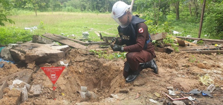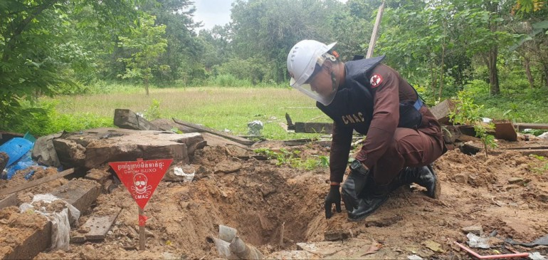 these photographs of bomb and artillery shell craters, these truly historical records of legacy of 5-day armed conflicts between Cambodia-Thailand (24-28 July 2025)! The remnants of war is well survey, identification, marking and in some cases to verify these subjects international experts also join with CMAC’s technical experts.!