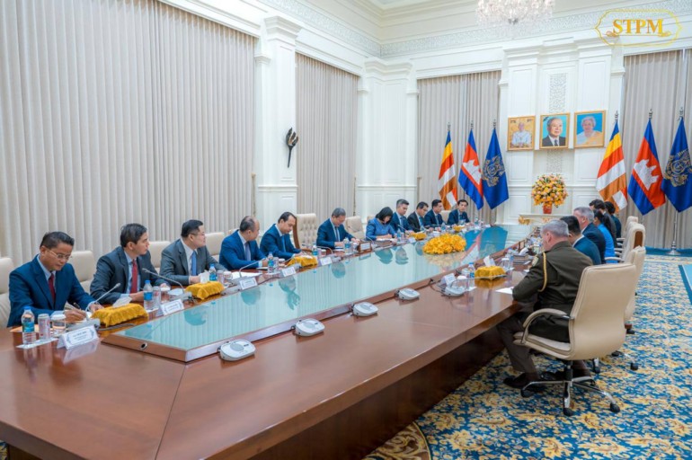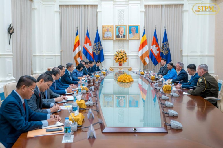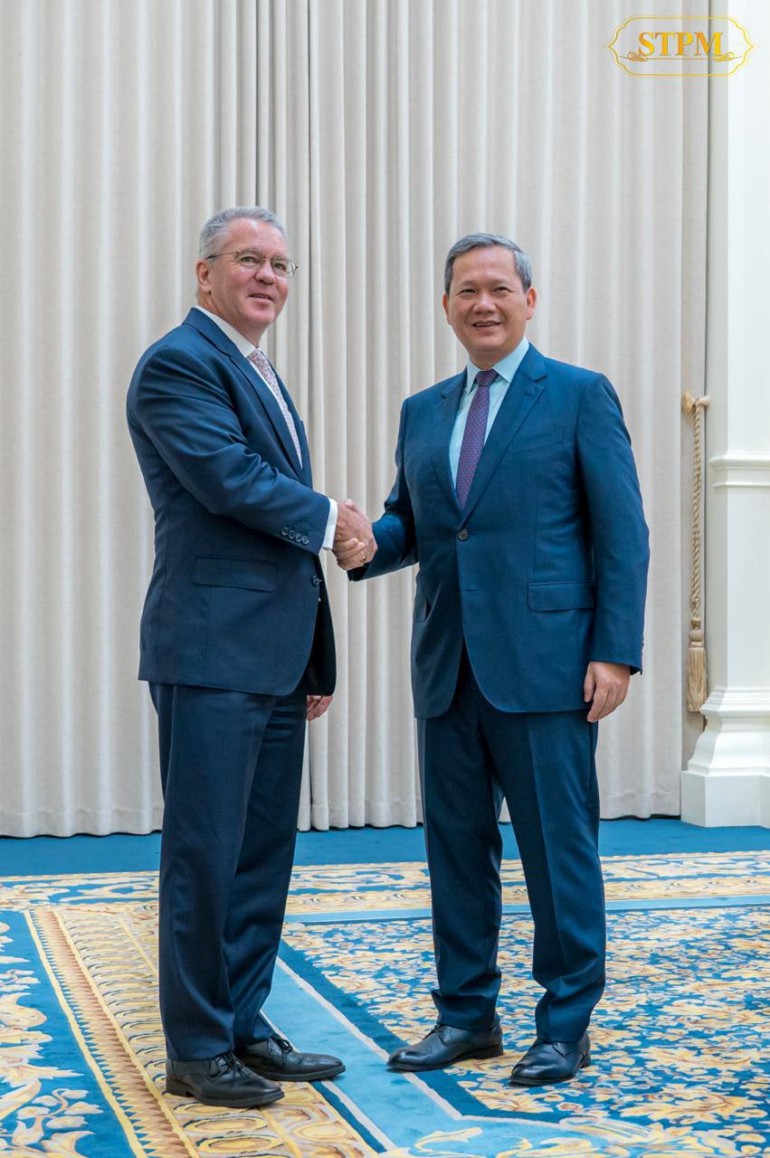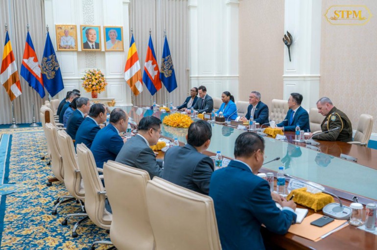 នា​ព្រឹក ថ្ងៃទី​៤ ខែវិច្ឆិកា ឆ្នាំ​២០២៥ នៅ​វិមាន​សន្តិភាព​, សម្តេច​មហា​បវរ​ធិបតី ហ៊ុន ម៉ា​ណែ​ត នាយករដ្ឋមន្ត្រី នៃ​ព្រះរាជាណាចក្រ​កម្ពុជា បានអនុញ្ញាត​ឱ្យ គណៈប្រតិភូ​សហរដ្ឋអាមេរិក ដែល​ដឹកនាំ​ដោយ ឯកឧត្តម Michael George DeSombre ឧបការី​រដ្ឋមន្ត្រី​ការបរទេស សហរដ្ឋអាមេរិក ទទួលបន្ទុក​តំបន់​អាស៊ី​បូព៌ា និង​ប៉ាស៊ីហ្វិក ចូលជួប​សម្តែង​ការគួរសម និង​ពិភាក្សា​ការងារ​។​