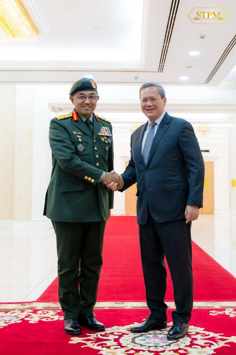 ជាការឆ្លើយតប, សម្តេចបវរធិបតី បានសម្តែងនូវការស្វាគមន៍យ៉ាងកក់ក្ដៅចំពោះ ឯកឧត្តមអគ្គមេបញ្ជាការកងទ័ពម៉ាឡេស៊ី និងគណៈប្រតិភូ និងបានវាយតម្លៃខ្ពស់ចំពោះតួនាទីរបស់ប្រទេសម៉ាឡេស៊ី ជាពិសេស តួនាទីដ៏សំខាន់របស់ឯកឧត្ដមនាយករដ្ឋមន្ត្រី Anwar Ibrahim ដែលបានចូលរួមចំណែកជួយសម្របសម្រួលឱ្យមានបទឈប់បាញ់ កាលពីថ្ងៃទី២៨ ខែកក្កដា ឆ្នាំ២០២៥ និង ការឈានទៅសម្រេចបាននូវសេចក្ដីថ្លែងការណ៍រួម កម្ពុជា-ថៃ ដែលបានចុះហត្ថលេខានៅទីក្រុងគូឡាឡាំពួ ប្រទេសម៉ាឡេស៊ី កាលពីថ្ងៃទី២៦ ខែតុលា ឆ្នាំ២០២៥ ក៏ដូចជាអរគុណដល់តួនាទីដ៏សកម្មរបស់ ឯកឧត្តមអគ្គមេបញ្ជាការ ក្នុងការដឹកនាំ និងសម្របសម្រួលក្រុមអ្នកសង្កេតការណ៍អាស៊ាន ស្របតាមបទឈប់បាញ់កម្ពុជា-ថៃ, ស្មារតីនៃកិច្ចប្រជុំគណ:កម្មាធិការព្រំដែនទូទៅកម្ពុជា-ថៃ និងខ្លឹមសារនៃសេចក្ដីថ្លែងការណ៍រួម កម្ពុជា-ថៃ ដែលបានចុះហត្ថលេខានៅទីក្រុងគូឡាឡាំពួ។