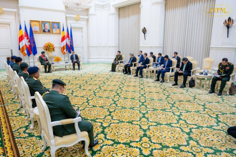 នាព្រឹកថ្ងៃទី៧ ខែធ្នូ ឆ្នាំ២០២៥, សម្តេចមហាបវរធិបតី ហ៊ុន ម៉ាណែត នាយករដ្ឋមន្ត្រី នៃព្រះរាជាណាចក្រកម្ពុជា បានអនុញ្ញាតឱ្យ ឯកឧត្តម នាយឧត្តមសេនីយ៍ Tan Sri Hj Mohd Nizam bin Hj Jaffar អគ្គមេបញ្ជាការកងទ័ពម៉ាឡេស៊ី និង គណៈប្រតិភូចូលជួបសម្ដែងការគួរសម និងពិភាក្សាការងារ នៅវិមានសន្តិភាព។