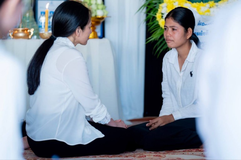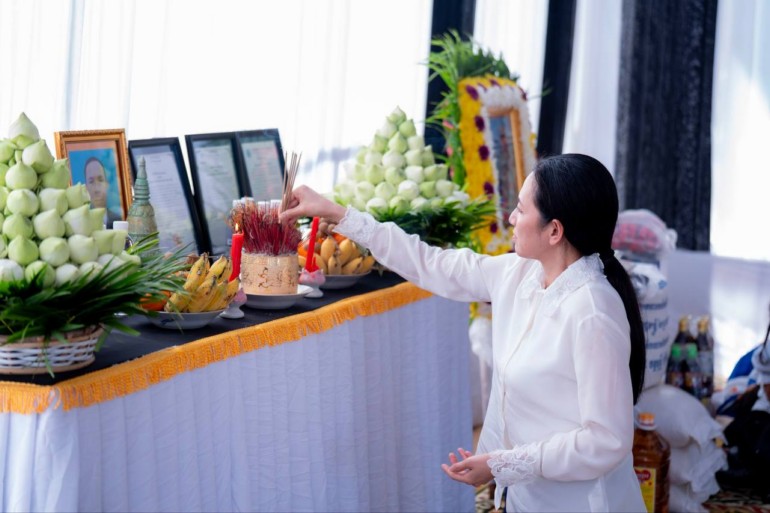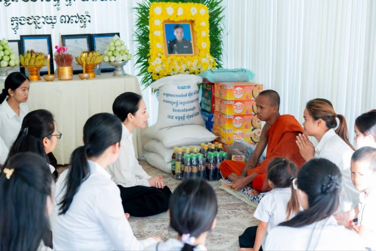 ​ក្នុង​វេលា​នេះដែរ លោកជំទាវ​បណ្ឌិត បាន​ពាំនាំ​ប្រសាសន៍​ចូលរួម​រំលែក​មរណទុក្ខ​ដ៏​ក្រៀមក្រំ​បំផុត រួម​ជាមួយ​ប្រសាសន៍​សួរសុខទុក្ខ​ពី សម្តេច​អគ្គមហាសេនាបតី​តេជោ ហ៊ុន សែន សម្តេច​កិត្តិ​ព្រឹទ្ធ​បណ្ឌិត ប៊ុន រ៉ានី ហ៊ុន​សែន រួមទាំង សម្តេច​មហា​បវរ​ធិបតី ហ៊ុន ម៉ា​ណែ​ត ជូន​ដល់​ក្រុមគ្រួសារ​នៃ​សព​ផងដែរ​។​