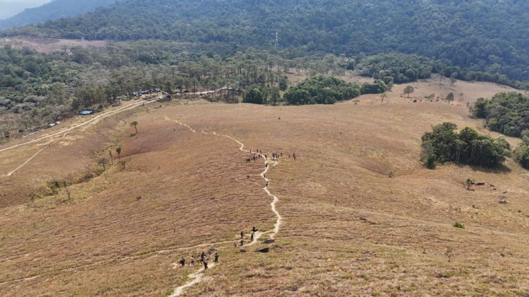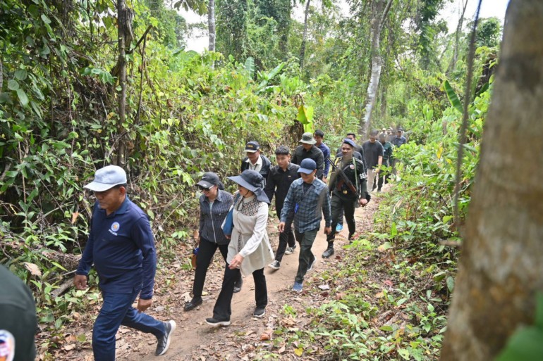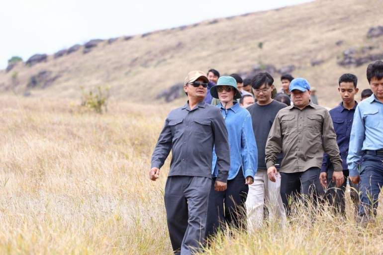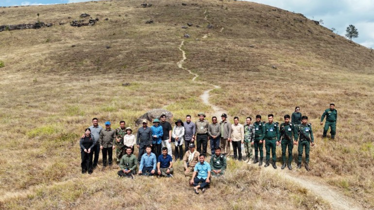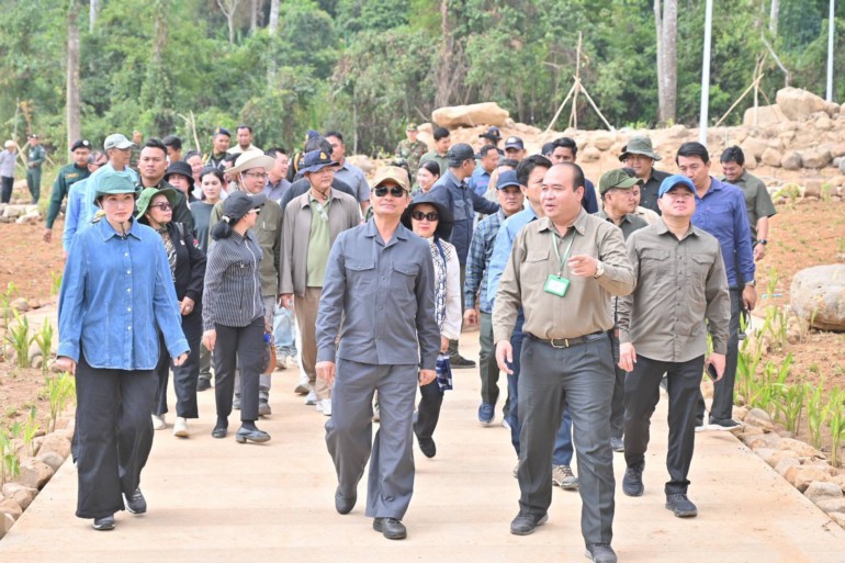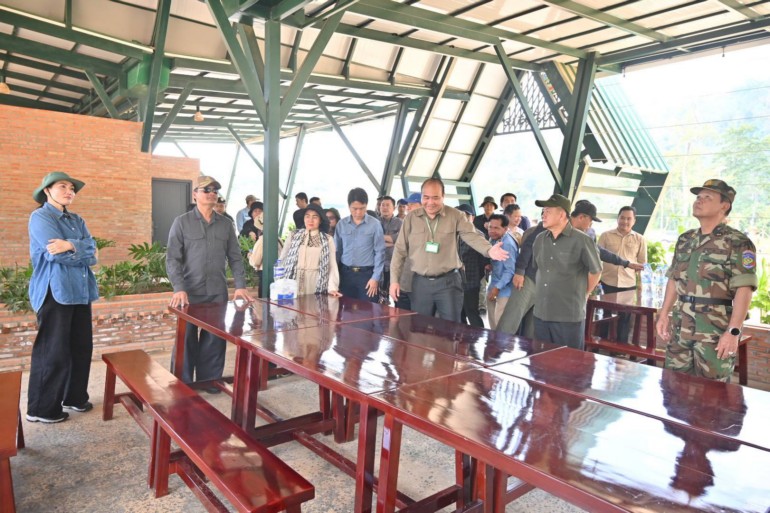 កំពង់ស្ពឺ ៖ អភិបាលខេត្តកំពង់ស្ពឺ លោកបណ្ឌិត ជាម ចន្ទ័សោភ័ណ នៅថ្ងៃទី២៨ ខែមករា ឆ្នាំ២០២៦ បានដឹកនាំមន្ត្រីក្រោមឱវាទចំណុះមន្ទីរអង្គភាពជុំវិញខេត្តចុះពិនិត្យមើលវឌ្ឍនភាពនៃការសាងសង់ ស្ថាបនាហេដ្ឋារចនាសម្ព័ន្ធនានានិងផ្លូវឡើងទៅកាន់ភ្នំខ្នងផ្សារ ស្ថិតក្នុងភូមិតាំងបំពង់ ឃុំតាសាល ស្រុកឱរ៉ាល់ គ្រាដែលមណ្ឌលព័ត៌មាននិងហេដ្ឋារចនាសម្ព័ននានានៅដំណាក់ដំរីរួចរាល់១០០%ហើយ។