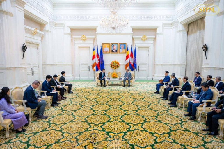 នាព្រឹកថ្ងៃទី៩ ខែកុម្ភៈ ឆ្នាំ២០២៦ សម្ដេចមហាបវរធិបតី ហ៊ុន ម៉ាណែត នាយករដ្ឋមន្ត្រី នៃព្រះរាជាណាចក្រកម្ពុជា បានអនុញ្ញាតឱ្យលោកសាស្ត្រាចារ្យ តេតស៊ូយ៉ា វ៉ាតាណាបេ (Tetsuya WATANABE) ប្រធានវិទ្យាស្ថានស្រាវជ្រាវសេដ្ឋកិច្ចសម្រាប់កិច្ចការអាស៊ាន និងអាស៊ីបូព៌ា (ERIA) ចូលជួបសម្ដែងការគួរសម និងពិភាក្សាការងារ នៅវិមានសន្ដិភាព។