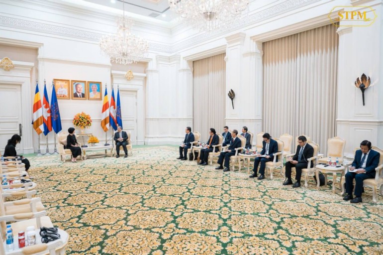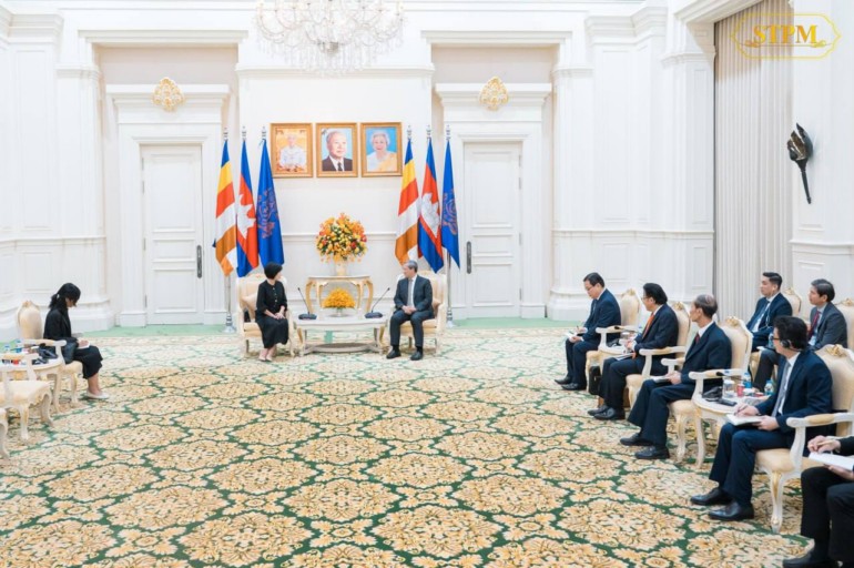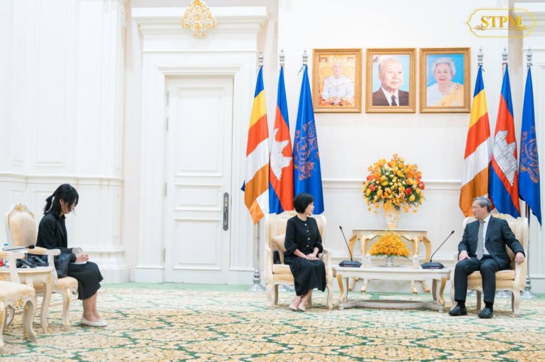 ​ពាក់ព័ន្ធ​នឹង​បញ្ហា​ព្រំដែន​កម្ពុជា​-​ថៃ​, សម្ដេច​ធិបតី​ក៏​បាន​ជម្រាបជូន​លោកជំទាវ​អំពី​ការវិវត្ត​ថ្មីៗ​នៃ​ស្ថានការណ៍​ជម្លោះ​ព្រំដែន កម្ពុជា​-​ថៃ និង​បាន​សង្កត់ធ្ងន់​អំពី​ការប្ដេជ្ញាចិត្ត ក៏ដូចជា​ជំហរ​របស់​កម្ពុជា​នៅ​ក្នុង​ការបន្ត​ប្រកាន់​យក​ការដោះស្រាយ​បញ្ហា​ព្រំដែន​ដោយ​សន្តិវិធី ផ្អែកលើ​ច្បាប់​អន្តរជាតិ អនុសញ្ញា សន្ធិសញ្ញា និង​កិច្ចព្រមព្រៀងទ្វេភាគី​ដែល​មាន​ស្រាប់​រវាង​ប្រទេស​ទាំង​ពីរ​។ លោកជំទាវ​ឯកអគ្គរដ្ឋទូត​សង្ឃឹមថា បញ្ហា​នៃ​ជម្លោះ​ព្រំដែន​នេះ​នឹង​ត្រូវបាន​ដោះស្រាយ​ដោយ​សន្តិវិធី​៕