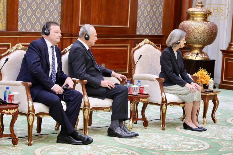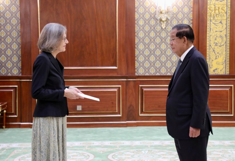 នៅវិមានសាមគ្គីភាព នៃព្រឹទ្ធសភាជាតិកម្ពុជា នាព្រឹកថ្ងៃពុធ ១រោច ខែផល្គុន ឆ្នាំម្សាញ់ សប្តស័ក ព.ស.២៥៦៩ ត្រូវនឹងថ្ងៃទី៤ ខែមីនា ឆ្នាំ២០២៦នេះ សម្តេចអគ្គមហាសេនាបតីតេជោ ហ៊ុន សែន ប្រមុខរដ្ឋស្តីទីនៃព្រះរាជាណាចក្រកម្ពុជា បានអនុញ្ញាតឱ្យ លោកជំទាវ Katharina Wieser ឯកអគ្គរដ្ឋទូតថ្មីនៃសាធារណរដ្ឋអូទ្រីសប្រចាំនៅកម្ពុជា ចូលជួប និងប្រគល់សារតាំង។