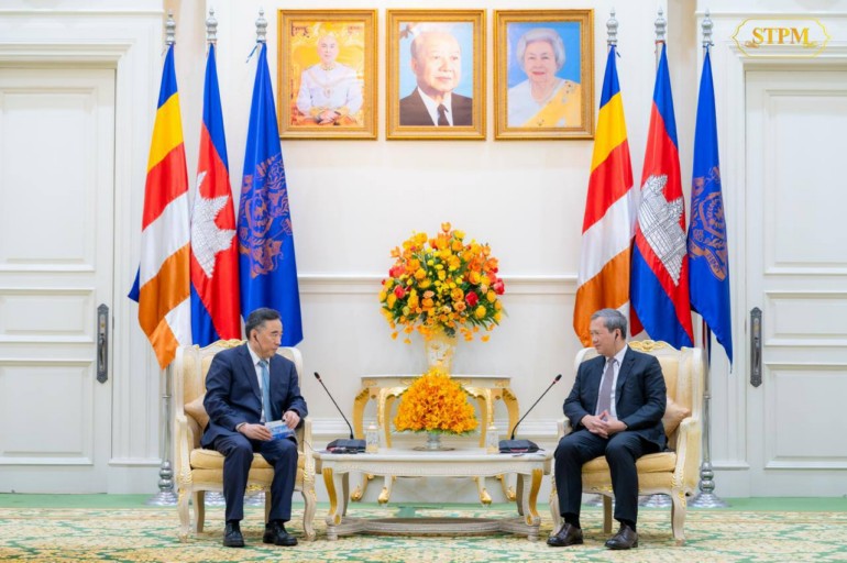 វិមាន​សន្តិភាព​-​ភ្នំពេញ ៖ នា​ព្រឹក​ថ្ងៃទី​១០ ខែ​មេសា ឆ្នាំ​២០២៦, សម្ដេច​មហា​បវរ​ធិបតី ហ៊ុន ម៉ា​ណែ​ត នាយករដ្ឋមន្ត្រី​នៃ​ព្រះរាជាណាចក្រ​កម្ពុជា បានអនុញ្ញាត​ឱ្យ លោក Song Hailiang ប្រធាន​ក្រុមហ៊ុន China Communication Construction Company (CCCC) ចូលជួប​សម្តែង​ការគួរសម និង​ពិភាក្សា​ការងារ នៅ​វិមាន​សន្តិភាព ។​