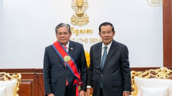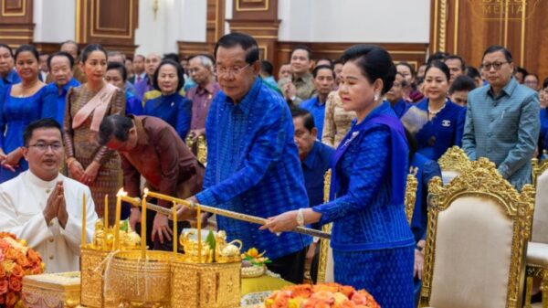 សម្ដេចតេជោ ហ៊ុន សែន និងសម្តេចកិត្តិព្រឹទ្ធបណ្ឌិត ប៊ុន រ៉ានី ហ៊ុនសែន អញ្ជើញក្នុងពិធីចម្រើនព្រះបរិត្តឡើងអគារវិមានសាមគ្គីភាព (អគារថ្មីព្រឹទ្ធសភា)